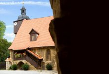 Die Pfarrkirche St. Bartholomäi in Dornheim, Thüringen. Ein historisches Datum war der 14.Oktober 1707. An diesem Tag heiratete Johann Sebastian Bach seine Base Maria Barbara Bach in der Kirche St. Bartholomäi.Außerdem trafen sich 1813 die...